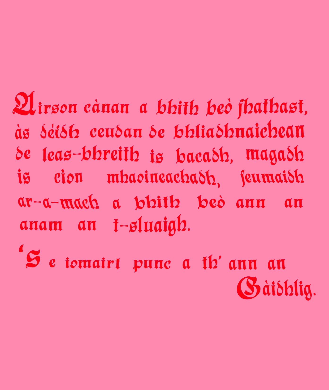 // for a language to still be alive after hundreds of years of discrimination, banning, ridicule, and a lack of funding, rebellion has to live in the souls of her people. Gaelic is punk.
